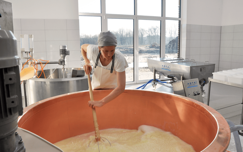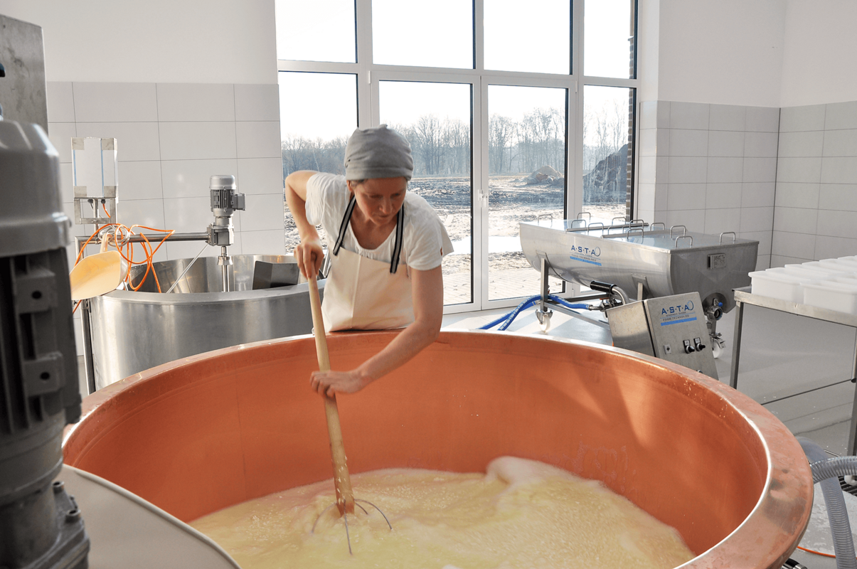 Seit 2010 stellen wir verschiedene Weichkäsesorten her: Camembert oder „Witte Deern“, ein großer runder Laib mit weißem Schimmel und den „Rooten Bengel“, der eine rötliche Rinde hat und im Geschmack kräftiger ist.