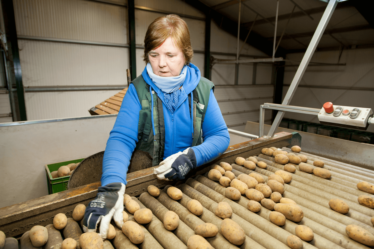 In der neuen Lagerhalle kommt modernste Kühltechnik zum Einsatz, damit die Kartoffel schnell in die Lagerruhe versetzt werden und bis zum Anschluss an die neuen Kartoffeln im Frühjahr für den Verbraucher vorgehalten werden kann. In der Weiterverarbeitung der Kartoffel steht der Geschmack im Vordergrund, deshalb wird die Kartoffel hier sorgfältig und schonend sortiert und nicht gewaschen, sondern gebürstet.