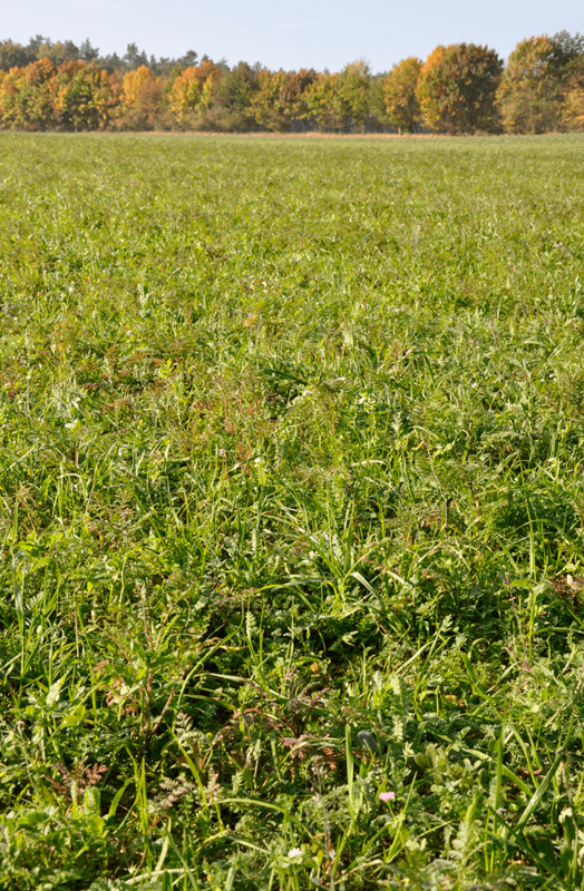 Ein weiteres gutes Beispiel für eine Untersaat im Getreidebestand ist Serradella, eine Leguminose, die im Mai in das Getreide ausgesät wird. Wenn das Getreide ausgereift ist und abstirbt, entwickelt sich die Serradella. „Die Serradella ist dann nach der Ernte so groß, dass sie den Boden vor Austrocknung durch intensive Sonneneinstrahlung schützt.“ Ohne Untersaat ist es wichtig, so schnell wie möglich eine Zwischenfrucht auszusäen. „Wie wir Fruchtfolge und Zwischenfrüchte gestalten, ist Teil der Landschaftsgestaltung. Sie hat auch unmittelbar damit zu tun, wie viel Biodiversität wir haben: Wie viele Insekten, Vögel und Kleintiere – sie kommt der ganzen Umwelt zugute.“